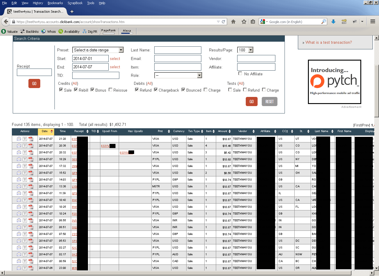 The screenshot below will give you a glimpse into the success of Teeth Whitening 4 You. After just seven days in the marketplace, 135 sales have been made (thanks to affiliates who instantly noticed that this product is a great converter!)